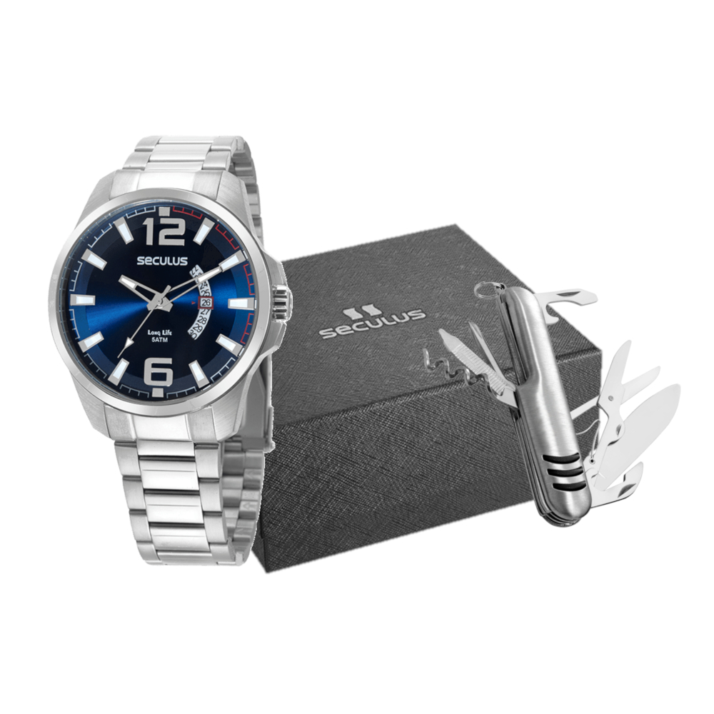 RELÓGIO SECULUS MASCULINO CAIXA E PULSEIRA DE AÇO. 2 ANOS DE GARANTIA.